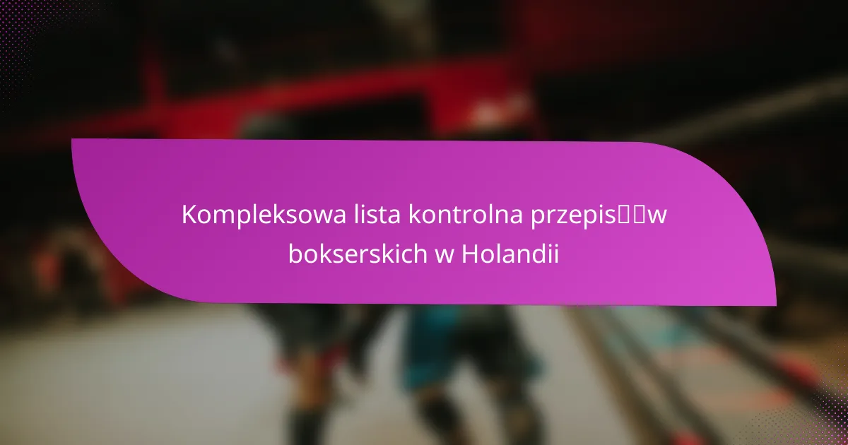 Jakie są kluczowe regulacje bokserskie w Holandii?