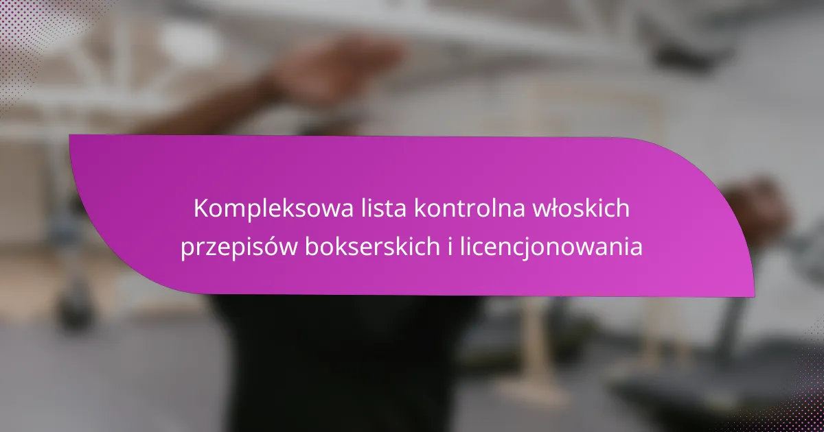 Włoskie przepisy bokserskie są niezbędne dla zapewnienia integralności i bezpieczeństwa sportu, obejmując takie obszary jak licencjonowanie, kategorie wagowe i promocja wydarzeń. Znajomość tych zasad jest kluczowa dla sportowców, promotorów i trenerów, aby skutecznie poruszać się w konkurencyjnym krajobrazie. Ta kompleksowa lista kontrolna przedstawia niezbędne kroki i wymagania dotyczące zgodności w ramach włoskiego boksu.