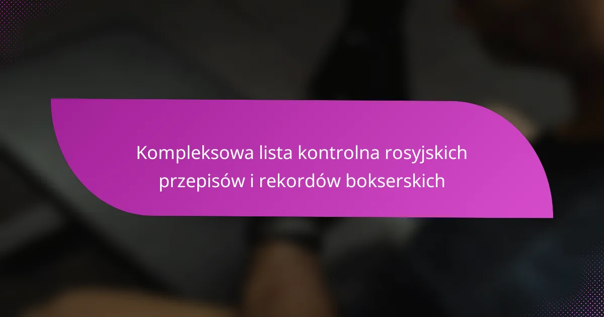 Ta kompleksowa lista kontrolna przedstawia kluczowe przepisy i regulacje dotyczące boksu w Rosji, zarządzane przez Rosyjską Federację Boksu zgodnie z międzynarodowymi standardami. Zawiera istotne informacje na temat zasad rywalizacji, protokołów bezpieczeństwa oraz kwalifikacji sportowców, a także podkreśla bogatą historię rosyjskiego boksu poprzez jego znaczące rekordy i osiągnięcia.