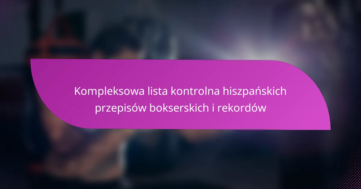 Ta kompleksowa lista kontrolna przedstawia kluczowe regulacje i zapisy dotyczące boksu w Hiszpanii, głównie ustanowione przez Hiszpańską Federację Boksu (FEB). Obejmuje istotne aspekty, takie jak licencjonowanie, kategorie wagowe, protokoły bezpieczeństwa i kryteria sędziowania, zapewniając uczciwą rywalizację i bezpieczeństwo uczestników. Dodatkowo podkreśla, jak oficjalne organizacje utrzymują dokładne zapisy dotyczące występów zawodników, które są niezbędne do ustalania rankingów i kontekstu historycznego.