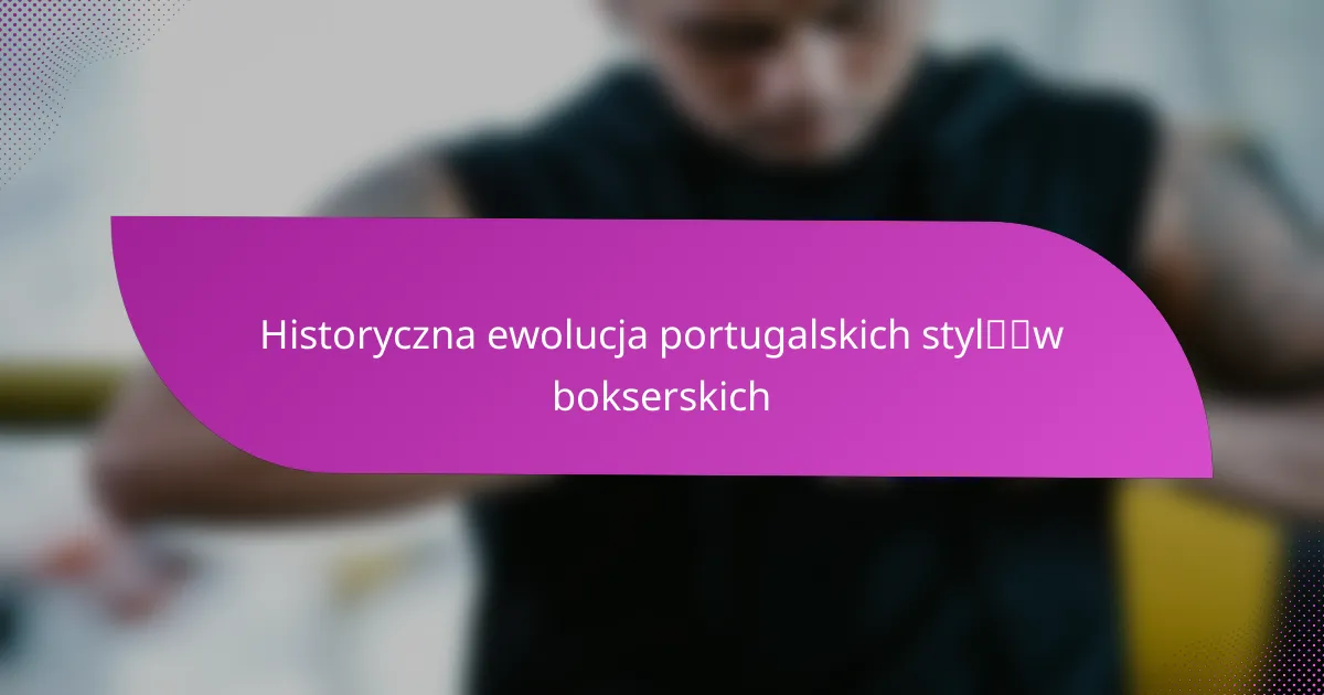 Historyczna ewolucja portugalskich stylów bokserskich ukazuje bogaty splot wpływów kulturowych, podkreślając znaczenie pracy nóg, zwinności oraz różnorodnych technik uderzeń. Z biegiem czasu style te dostosowywały się, aby odzwierciedlać zarówno tradycyjne praktyki, jak i nowoczesne techniki, kształtowane przez wydarzenia historyczne oraz zmiany społeczno-polityczne. Ta dynamiczna ewolucja podkreśla unikalne połączenie lokalnej kultury i globalnych trendów, które definiują portugalski boks dzisiaj.