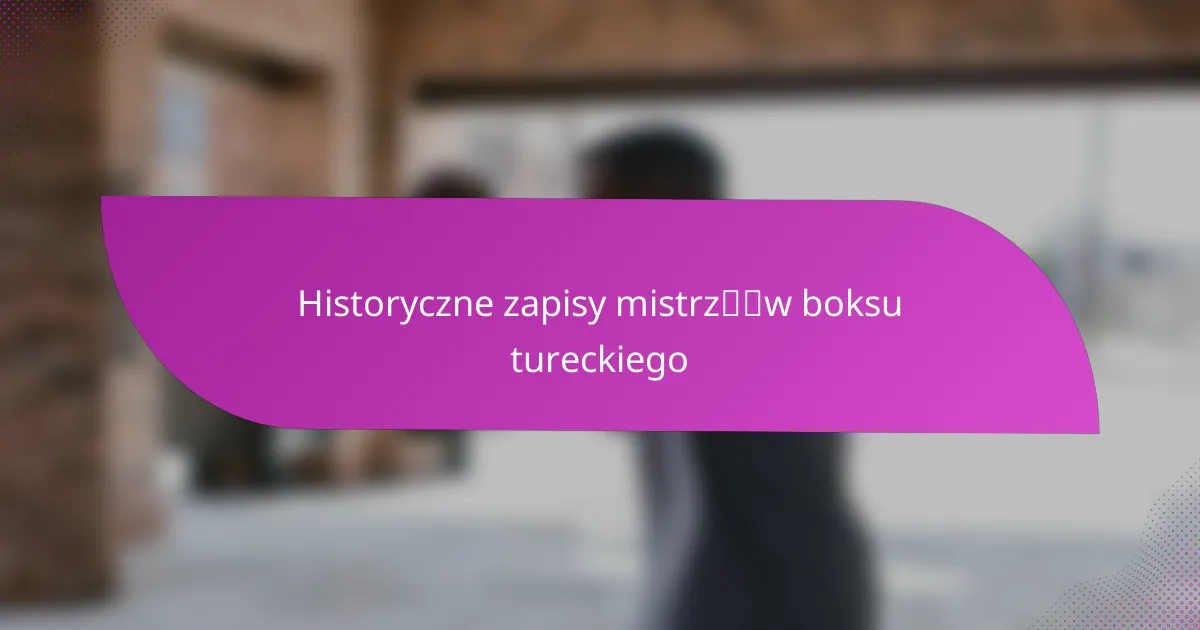Historyczne zapisy tureckich mistrzów boksu podkreślają osiągnięcia i kamienie milowe bokserów z Turcji, ukazując ich wkład w ten sport. Zapisy te obejmują tytuły mistrzowskie, znaczące walki oraz ewolucję boksu w kraju.